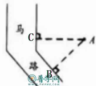 过点A分别向两个方向的马路作垂线段,看哪条垂线段比较短,就沿着那条垂线段解煤气管道。